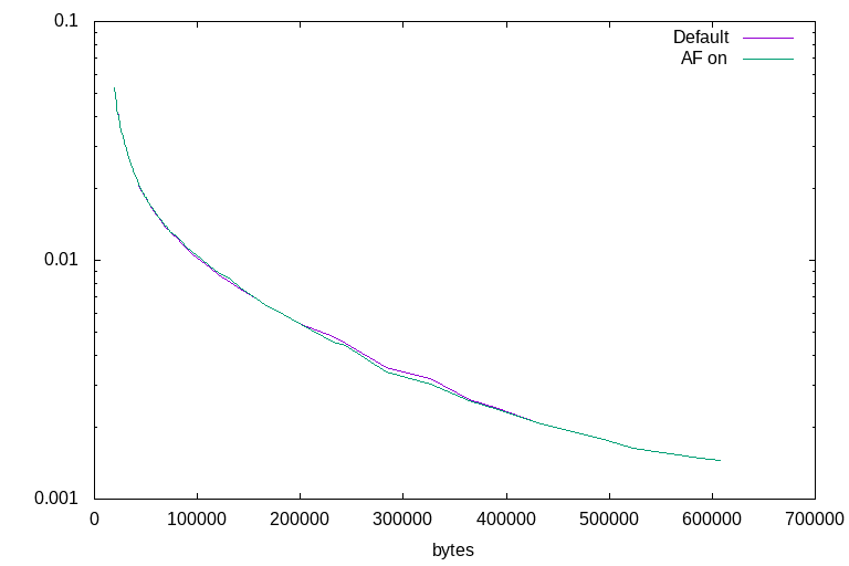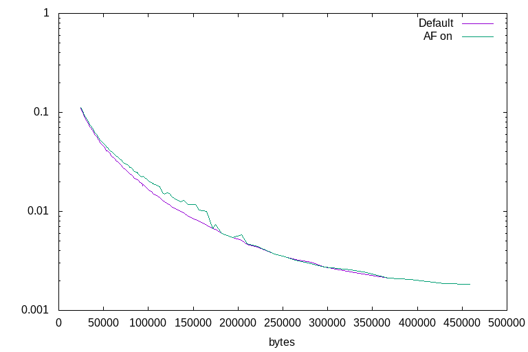 The use of the experimental auto-filter option allows for a very slight improvement at some quality settings on some images, and an equally slight impairment of performance at different quality settings on different images, after testing on three photographs and three illustrations. It appears to have little practical use. It makes no significent difference to file size at any specified quality level, as the filter is only a post-decode operation.
